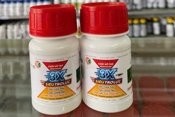 SIÊU TRỢ LỰC 3X là chất bổ sung vào bình phun sau khi đã hoà các thuốc BVTV trừ dịch hại khác, có tác dụng tăng độ bám dính và lưu giữ thuốc trên bề mặt phun, giúp lan toả thuốc tránh đọng thành từng giọt, thấm sâu vào mô lá hoặc cơ thể sâu hại làm cho hiệu lực thuốc tăng 15-65%.