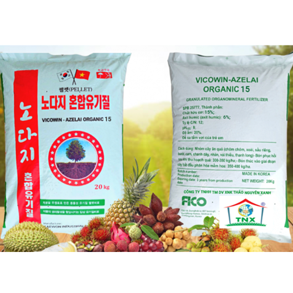 Phân bón gốc VICOWIN-AZELAI hữu cơ là một phân bón khoáng hữu cơ dạng hạt rắn cung cấp nitơ, phốt pho, kali, nguyên tố vi lượng và axit humic. Nó đã được phát triển để bổ sung các chất hữu cơ thiếu sót trong đất nông nghiệp.