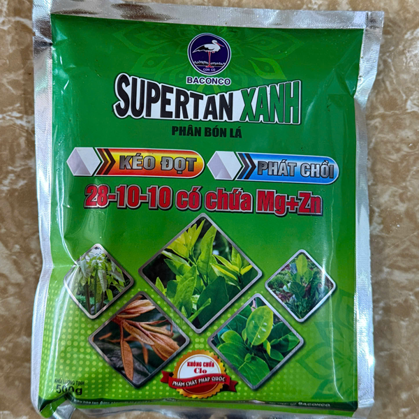 - Baconco Supertan Xanh (28-10-10) là sản phẩm phân bón lá giúp cho cây phát triển thân lá nhanh, đâm tược nhanh, phát tán lá nhanh, phục hồi và bổ sung chất dinh dưỡng.