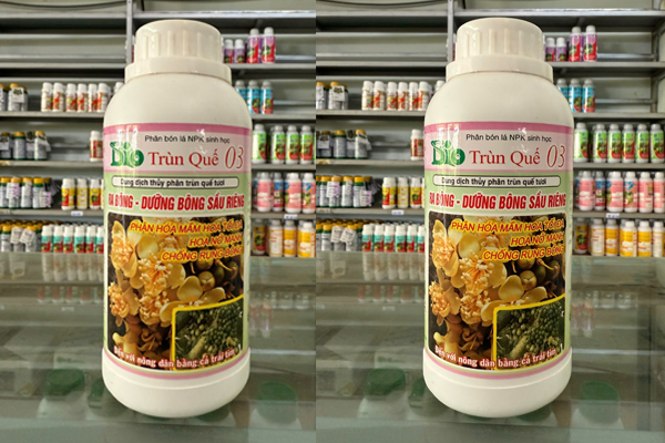 BIO TRÙN QUẾ 03 là sản phẩm phân bón lá NPK sinh học giàu dinh dưỡng, dung dịch nền thủy phân từ trùn quế tươi chứa nhiều loại acid amine hàm lượng cao giúp mát cây, dưỡng bông, phục vụ cho quá trình ra hoa sầu riêng. Tạo mầm hoa, ra hoa đồng loạt, phân hoa mầm hoa tối đa, hoa nở mạnh, chống rụng hoa.