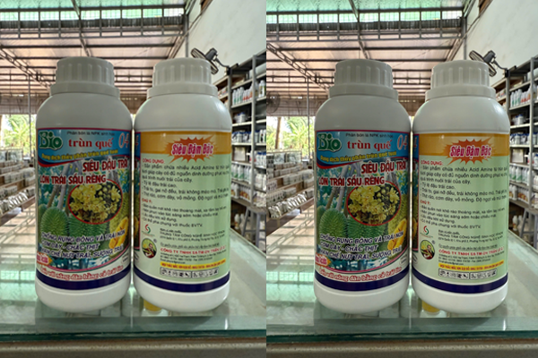 Phân bón lá NPK sinh học Trùn Quế 04 - dung dịch thủy phân trùn quế tươi - Siêu đậu trái, lớn trái sầu riêng, chống rụng bông và trái non, cơm dày, chắc thịt, hạn chế nứt trái, sượng trái, …