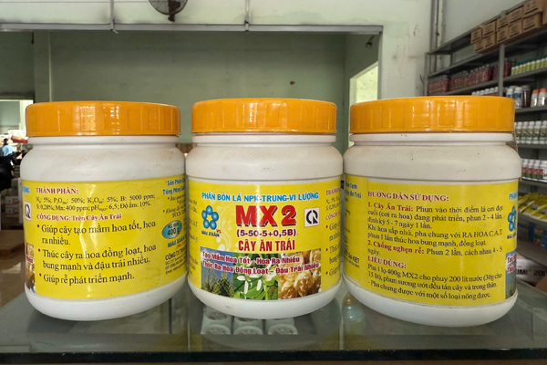 + Pha 1 lọ 400g MX2 cho phuy 220 lít nước ( 30g cho 15 lít ), phun sương ướt đều tán cây và trong thân.
