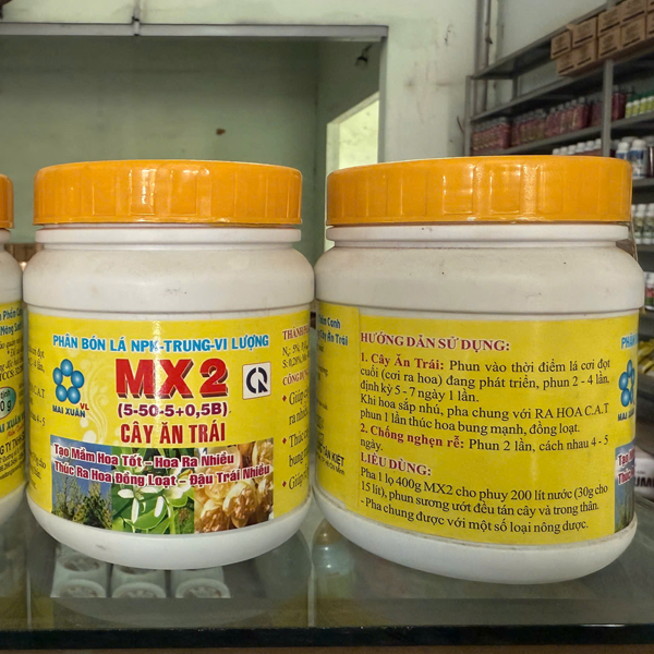 MAI XUÂN MX2 là sản phẩm phân bón lá NPK-Trung-Vi lượng giúp cây tạo mầm hoa tốt, hoa ra nhiều. Thúc cây ra hoa đồng loạt, hoa bung mạnh và đậu trái nhiều. Giúp rễ phát triển mạnh.