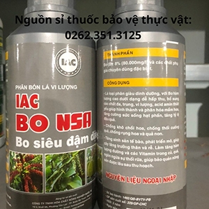 Phân bón lá vi lượng IAC BO NSA Bo siêu đậm đặc - Dễ hấp thụ, bổ sung các chất đa, trung, vi lượng thiết yếu giúp hình thành và phân hóa mầm hoa, tăng tỉ lệ đậu quả, chống khô chồi non, chống thối cuống quả, chống rụng hoa và quả non,..
