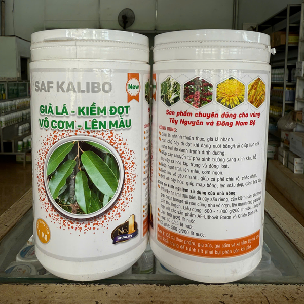 AFOTECH SAF KALIBO (GIÀ LÁ - KIỀM ĐỌT) 1KG là sản phẩm phân bón NK-Vi lượng giúp lá nhanh thuần thục, già lá nhanh; hạn chế cây đi đọt khi đang nuôi bông/trái giúp hạn chế rụng trái do cạnh tranh dinh dưỡng. Giúp cây chuyển từ pha sinh trưởng sang sinh sản, hỗ trợ cây ra hoa tập trung và đồng loạt; ngọt trái, lên màu, cơm ngon.