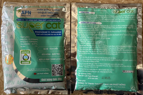 APN SUPER CAT là sản phẩm phân bón vi lượng có tác dụng giúp cây trồng tăng trưởng nhanh chóng, tăng khả năng quang hợp, tăng hàm lượng diệp lục, hấp thu dinh dưỡng nhanh chóng giúp kích rễ, đẻ nhánh và nâng cao sức đề kháng của cây trồng. Tăng sức chịu hạn, kháng kiềm, tăng khả năng kháng bệnh, giúp cây trồng nhanh chóng phục hồi trong điều kiện thời tiết bất lợi, tăng năng suất và chất lượng cây trồng.