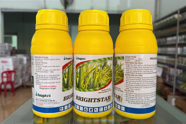 - BrightStar 25SC với hoạt chất Paclobutrazol là chất điều hòa sinh trưởng cây trồng. Thuốc được hấp thu qua rễ, thân và lá.
