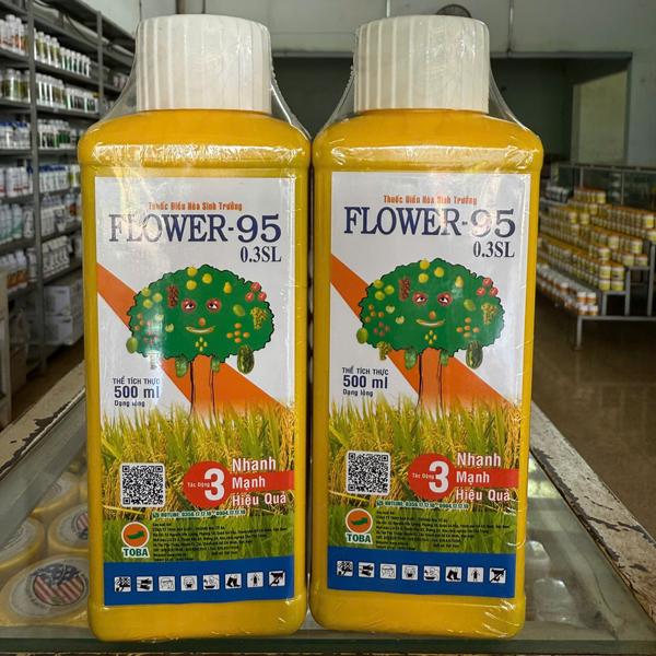 FLOWER 95 0,3SL là sản phẩm thuốc điều hòa sinh trưởng giúp kích thích sinh trưởng cho lúa, xoài, sầu riêng, nhãn,... kích thích ra hoa, tăng đậu quả.