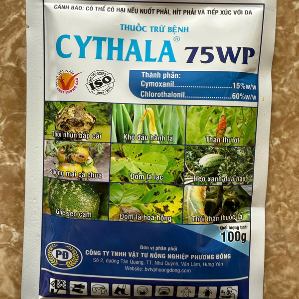 - Đồng Xanh - Cythala 75WP là thuốc trừ bệnh cây, có tính tiếp xúc và nội hấp (lưu dẫn) mạnh. Thuốc có phổ trừ bệnh rất rộng, phòng và trị hiệu quả nhiều loại bệnh hại trên nhiều loại cây trồng.