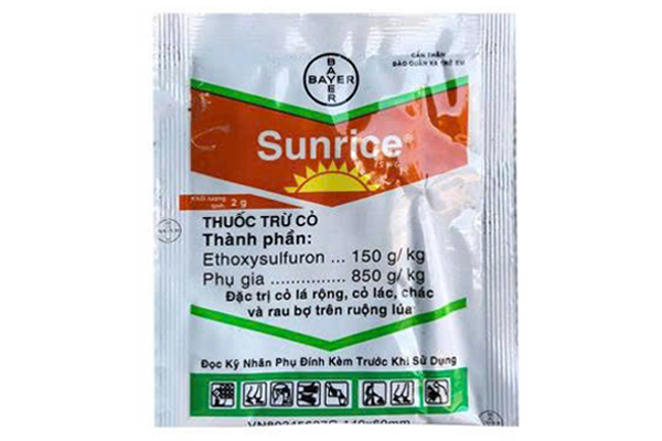 - Với hoạt chất Ethoxysulfuron 150 g/kg, Sunrice 15WG là chuyên gia trừ cỏ lá rộng, cỏ lác, chác và rau bợ trên ruộng lúa.