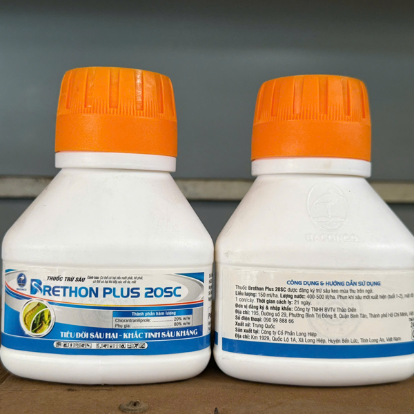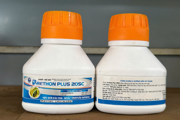 - Baconco Brethon Plus 20SC là sản phẩm thuốc trừ sâu ngấm sâu nhanh lưu dẫn mạnh, có phổ tác động rộng, tác dụng nhanh, hiệu lực kéo dài, đặc trị sâu đã kháng thuốc và khó trị như: sâu đục thân, sâu cuốn lá, sâu đục trái.