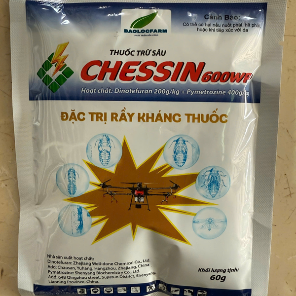 - Bảo Lộc Farm Chessin 600WP là sản phẩm thuốc trừ sâu hỗn hợp 2 hoạt chất tiên tiến có tác dụng tiếp xúc, vị độc và lưu dẫn mạnh.