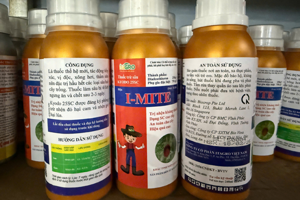 - Cam (nhện đỏ): dùng 0.2 - 0.3%. Phun ước đều cây trồng khi mật độ nhện khoảng 3 - 5 con/ lá.